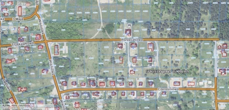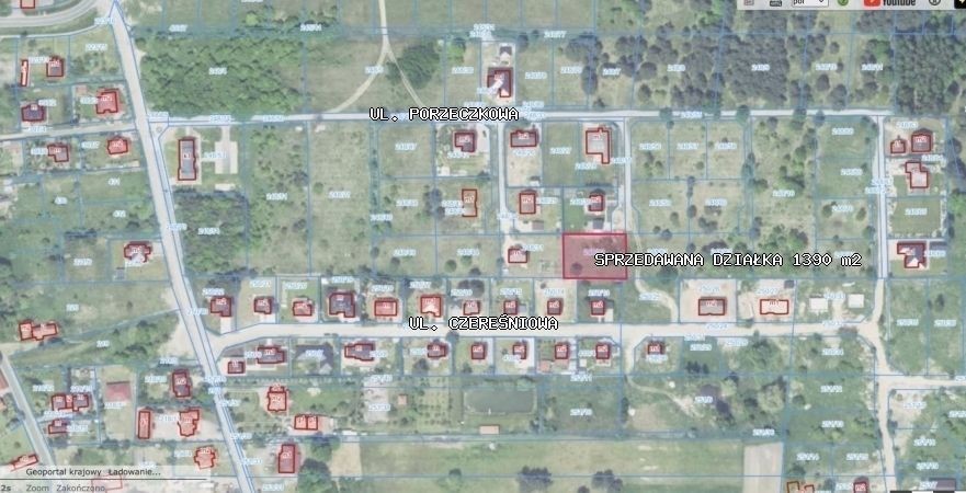 Działka niezabudowana, niezadrzewiona, o pow. 1390 m2, w kształcie prostokąta, o wymiarach około 34 m x 44 m, przy ul. Porzeczkowej (ostatnia niezabudowana), w sąsiedztwie znajdują się nowe duże domy wolnostojące. Dla terenu na którym położona jest działka gmina posiada aktualny plan zagospodarowania przestrzennego, który przewiduje zabudowę mieszkaniową jednorodzinną i drogi dojazdowe osiedlowe. Nieruchomość z dojazdem z głównej drogi, w której kupujący będą posiadali udział. Droga dojazdowa utwardzona. W sąsiedztwie nowe oraz w trakcie budowy domki jednorodzinne. Dookoła piękny las pełen grzybów i tras spacerowych, jeziorka. Cisza i spokój, zieleń oraz dobra komunikacja. Świetny dojazd do centrum Zielonej Góry.